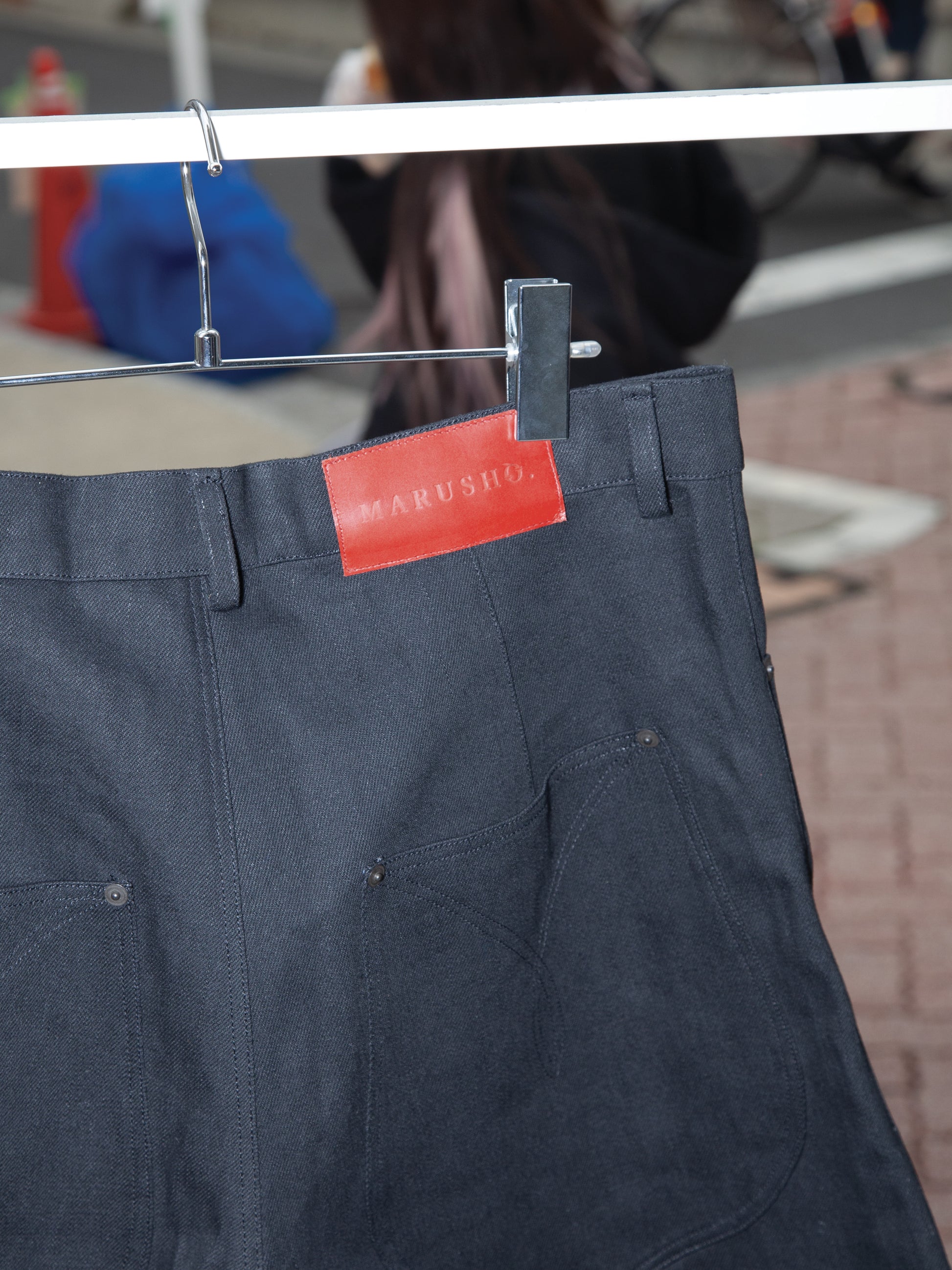 These Marusho jeans feature a sculptural, geometric silhouette that embodies the art of Japanese layering. Crafted with precision, the piece combines structured form and subtle detailing, making it both a statement garment and a versatile foundation for layered outfits. Its avant-garde shape reflects Marusho’s vision of contemporary Japanese tailoring—where functionality meets experimental design.
