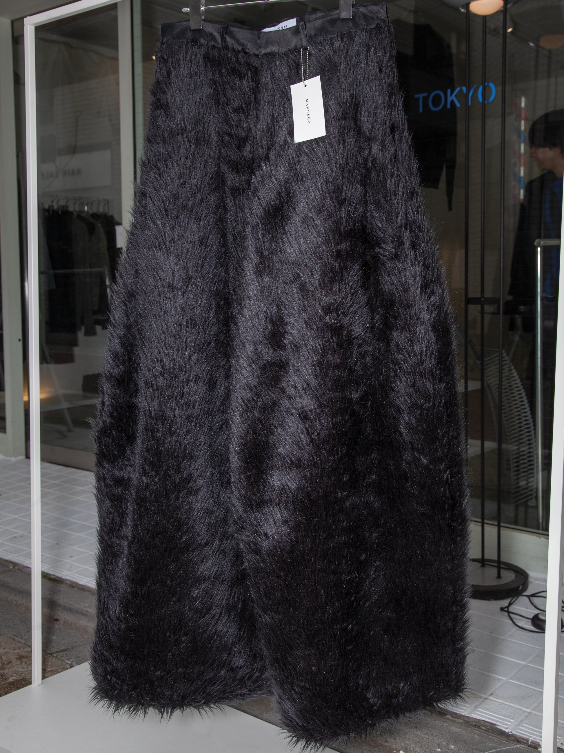 These AW25 pants by emerging Japanese designer Marusho are crafted from a luxurious blend of acrylic, polyester, and silk, creating a striking synthetic fur texture. In deep black, the pants combine dramatic volume and sculptural form, turning an everyday silhouette into a bold, avant-garde statement piece. Perfect for those seeking to explore Japanese contemporary fashion beyond conventional boundaries.